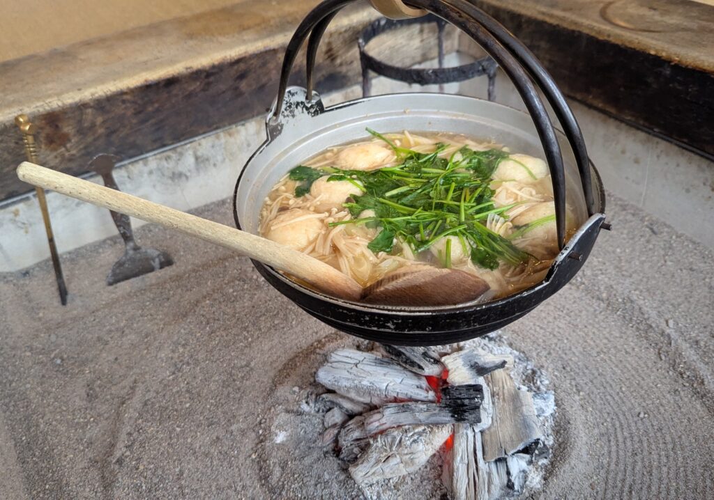 つなぎをほとんど使わずに丸められた山の芋は、箸で持ち上げられるほど弾力があるのに、口の中で味噌スープと一緒に優しくほどけます。